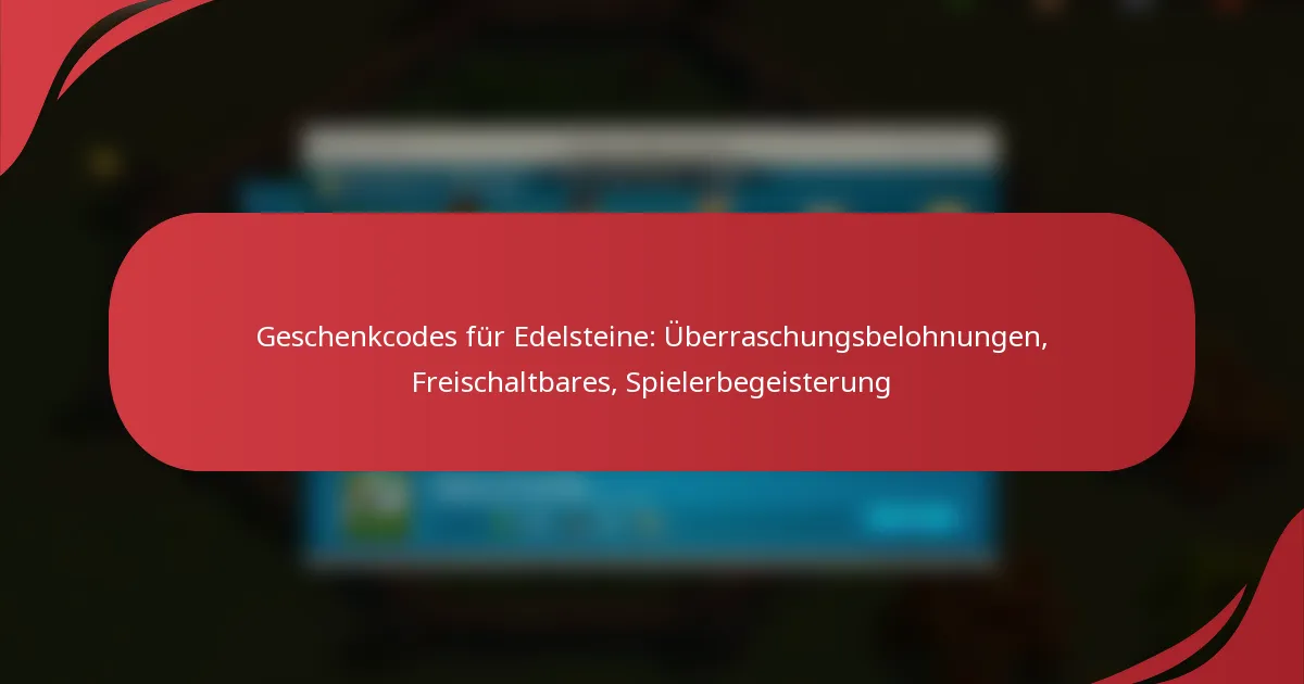 Geschenkcodes für Edelsteine sind einzigartige alphanumerische Zeichenfolgen, die Spieler gegen In-Game-Währung oder -Gegenstände einlösen können, um ihr Spielerlebnis zu verbessern. Diese Codes werden häufig durch Community-Verlosungen und Social-Media-Promotionen verteilt, um die Teilnahme und das Engagement der Nutzer zu fördern. Durch die Teilnahme […]